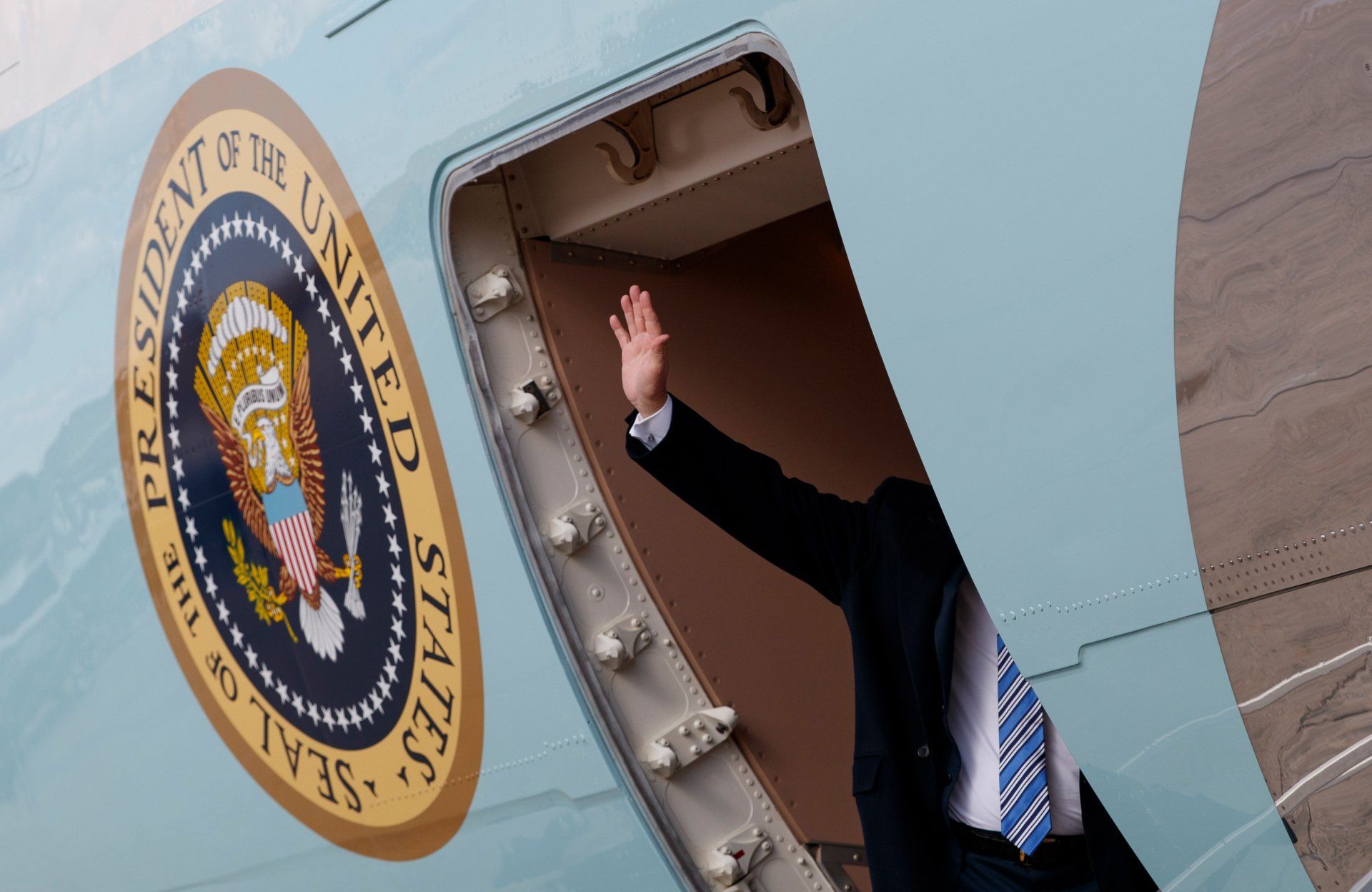 President Donald Trump waves as he boards Air Force One at Andrews Air Force Base, Md., Friday, March 23, 2018.