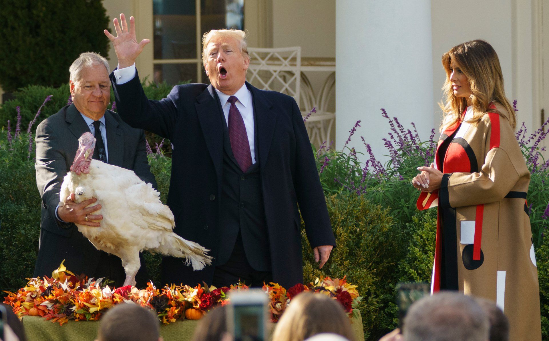 President Donald Trump pardons National Thanksgiving Turkey "Peas" with first lady Melania Trump in the Rose Garden of the White House in Washington, Tuesday, Nov. 20, 2018.