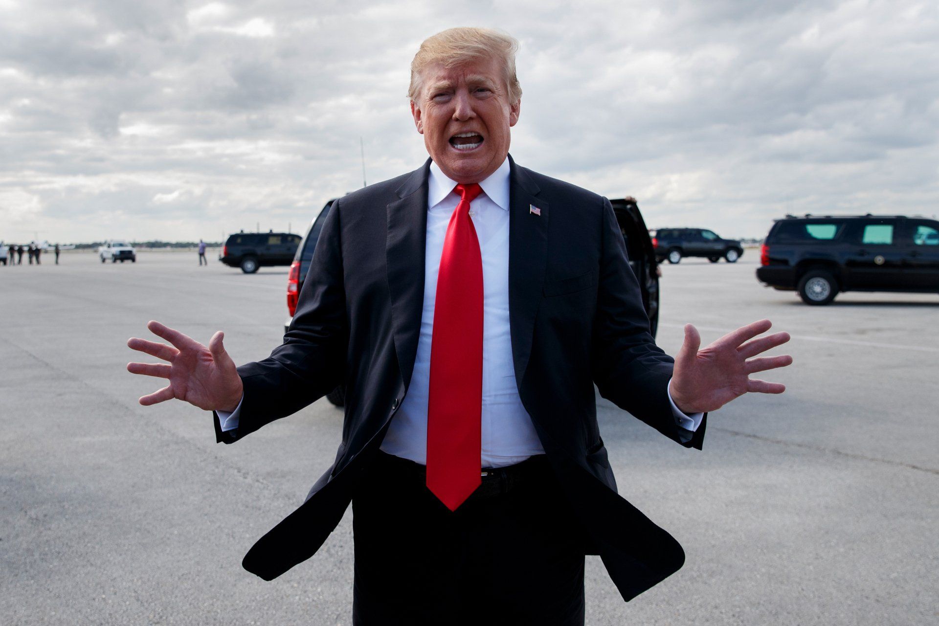 President Donald Trump speaks before boarding Air Force One in West Palm Beach, Fla., Sunday, March 24, 2019.