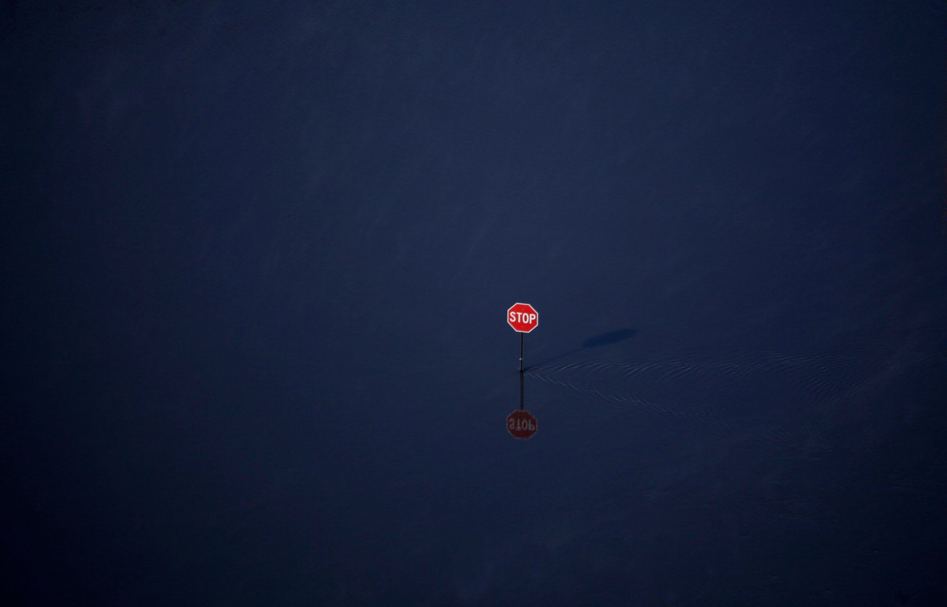 A road is covered by floodwaters as the Red River continues to rise in Fargo, N.D., Saturday, March 28, 2009.
