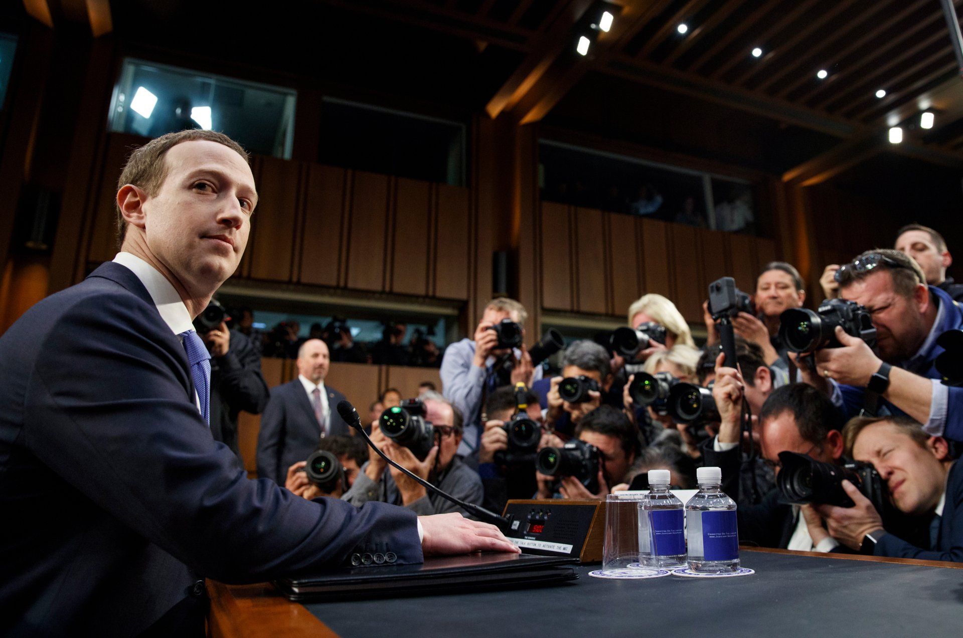 Facebook CEO Mark Zuckerberg testifies before a joint hearing of the Commerce and Judiciary Committees on Capitol Hill in Washington, Tuesday, April 10, 2018.