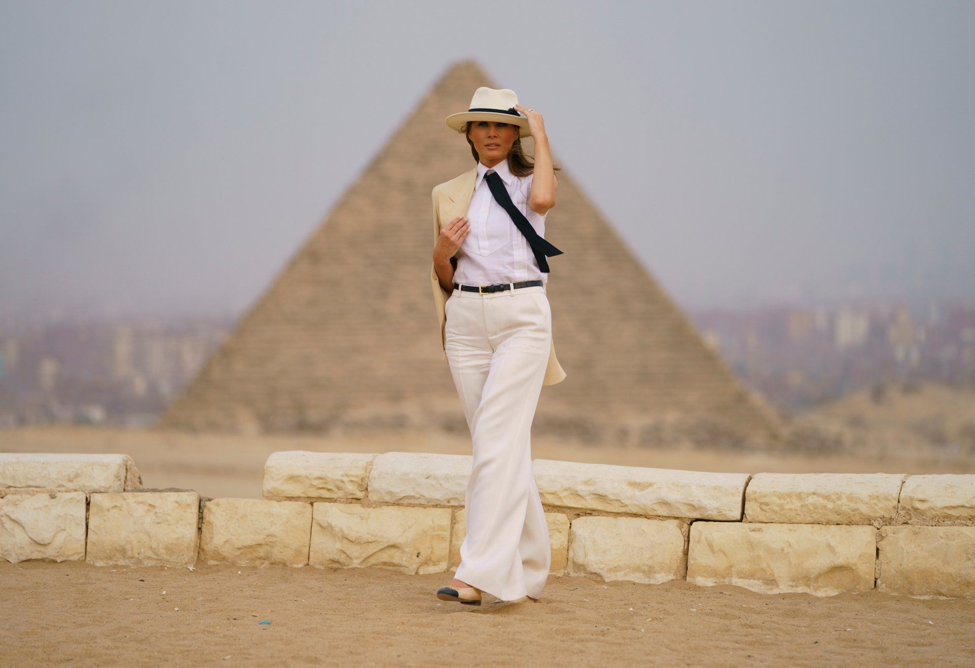 First lady Melania Trump visits the Giza Pyramids in Giza, near Cairo, Egypt. Saturday, Oct. 6, 2018.