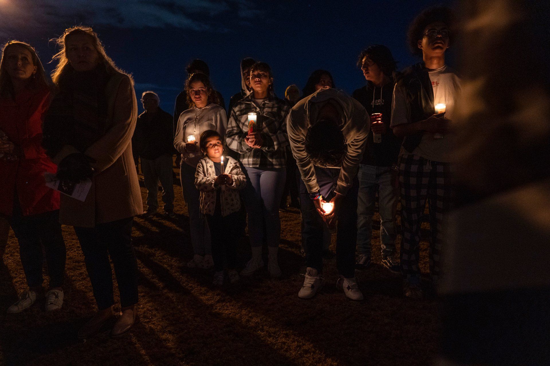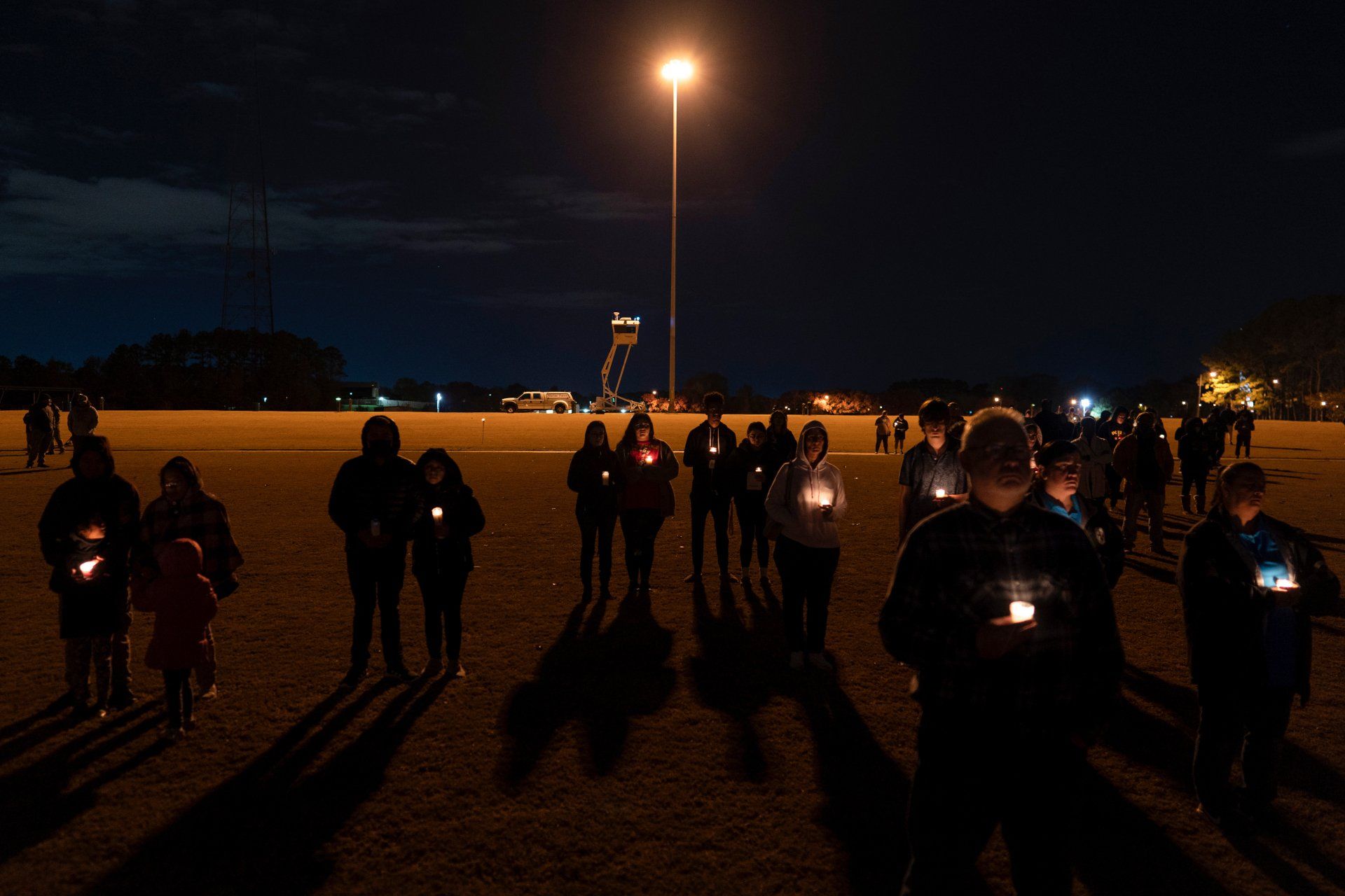 People gather for a candlelight vigil at Chesapeake City Park in Chesapeake, Va., Monday, Nov. 28, 2022, for the six people shot and killed at a Walmart in Chesapeake, Va.