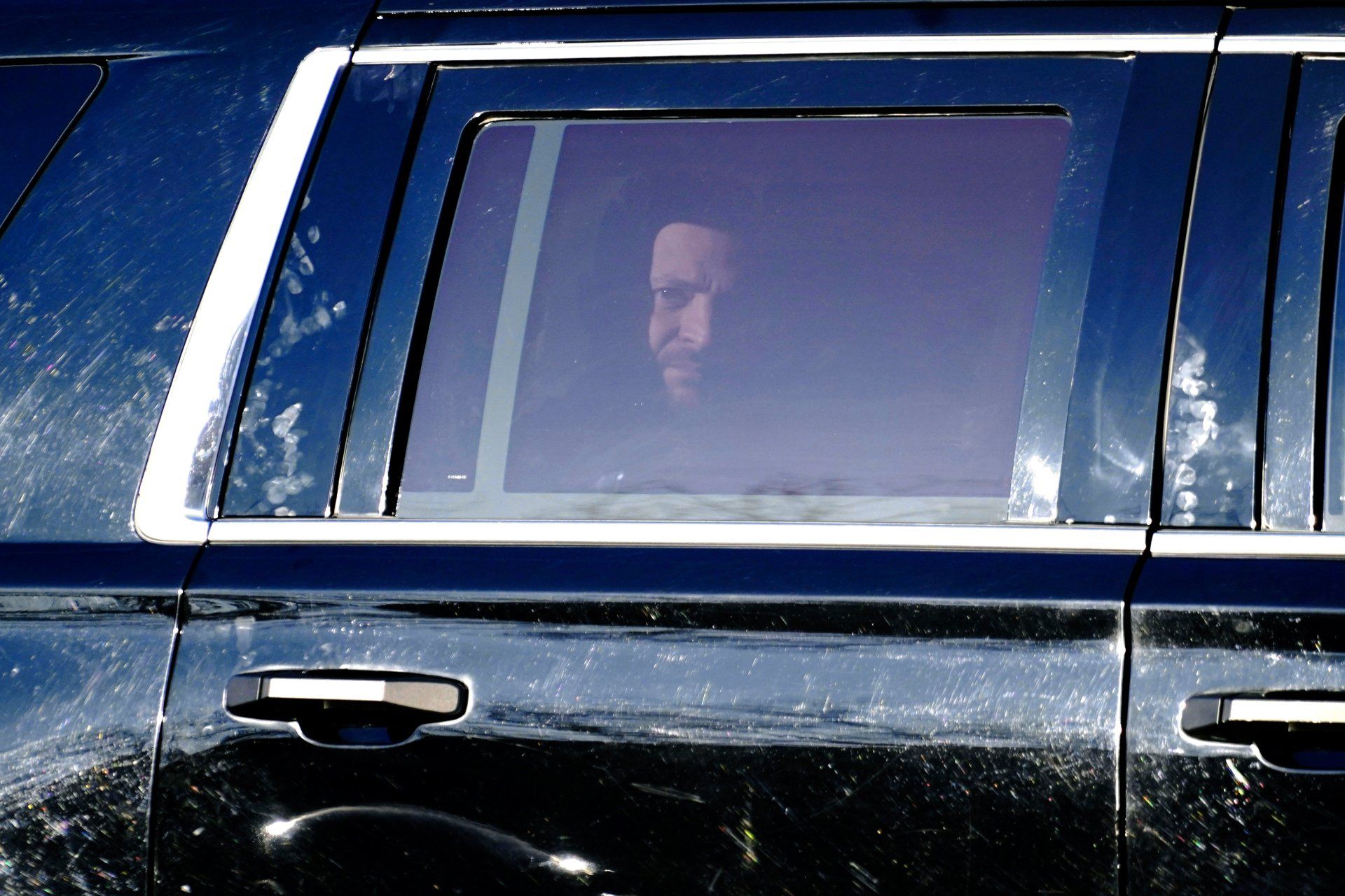 Ukrainian President Volodymyr Zelenskyy looks out as he is driven to the White House in Washington, Wednesday, Dec. 21, 2022.