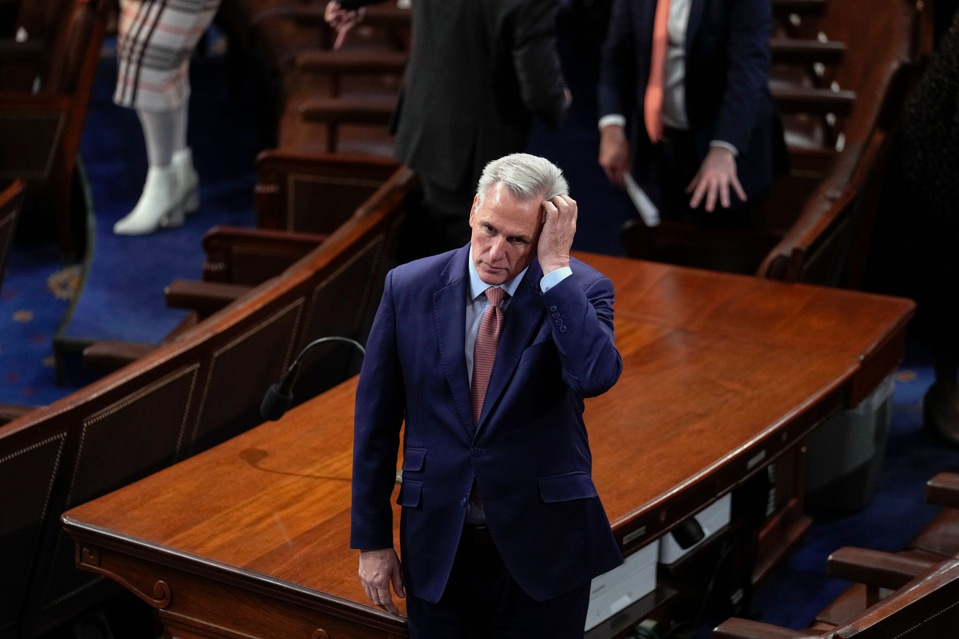 House Minority Leader Kevin McCarthy of Calif., stands on the House floor before Ukrainian President Volodymyr Zelenskyy addresses Congress at in Washington, Dec. 21, 2022.