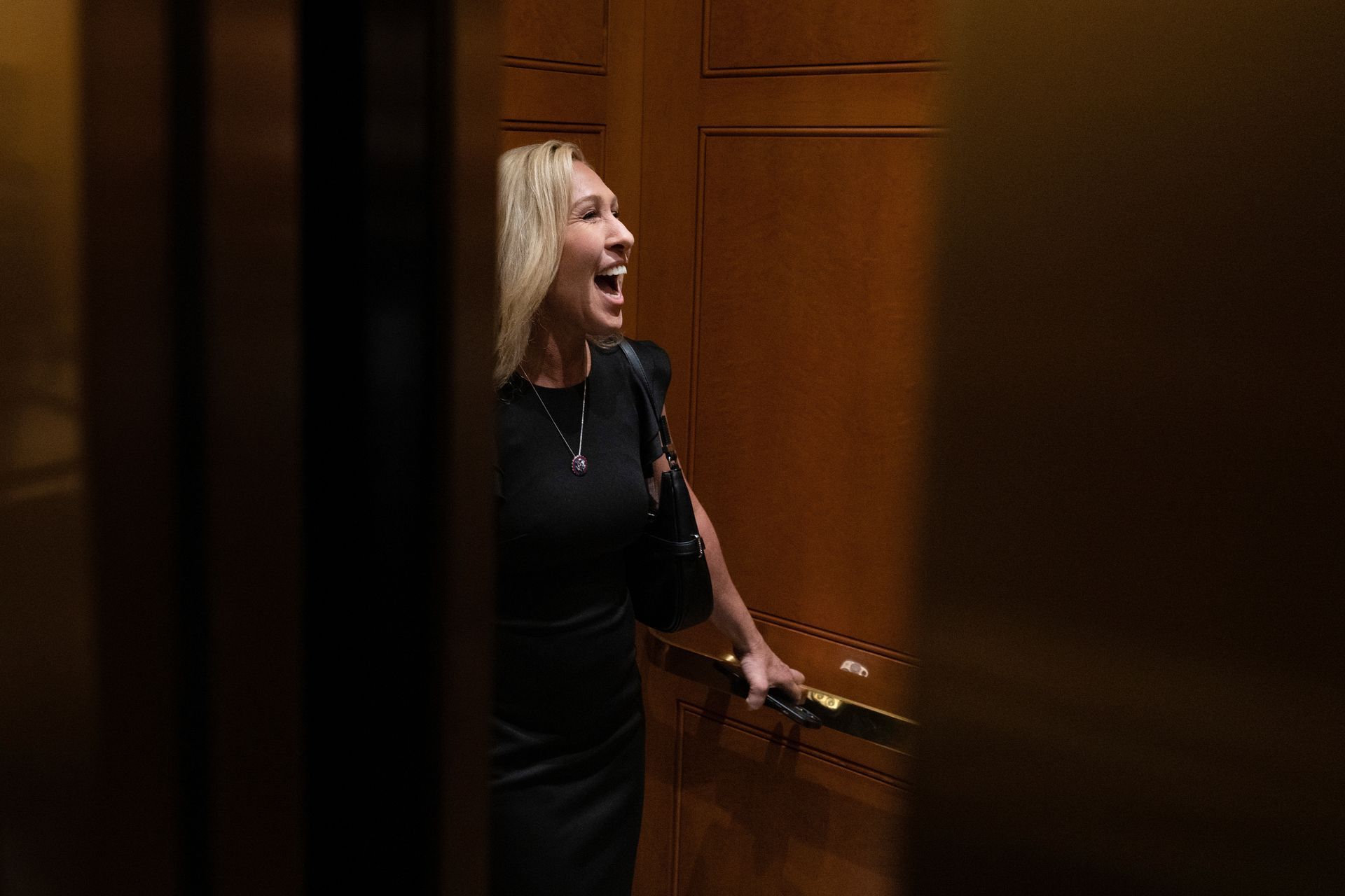 Rep. Marjorie Taylor Greene, R-Ga., talks in an elevator on Capitol Hill in Washington, Tuesday, Jan 3, 2023.