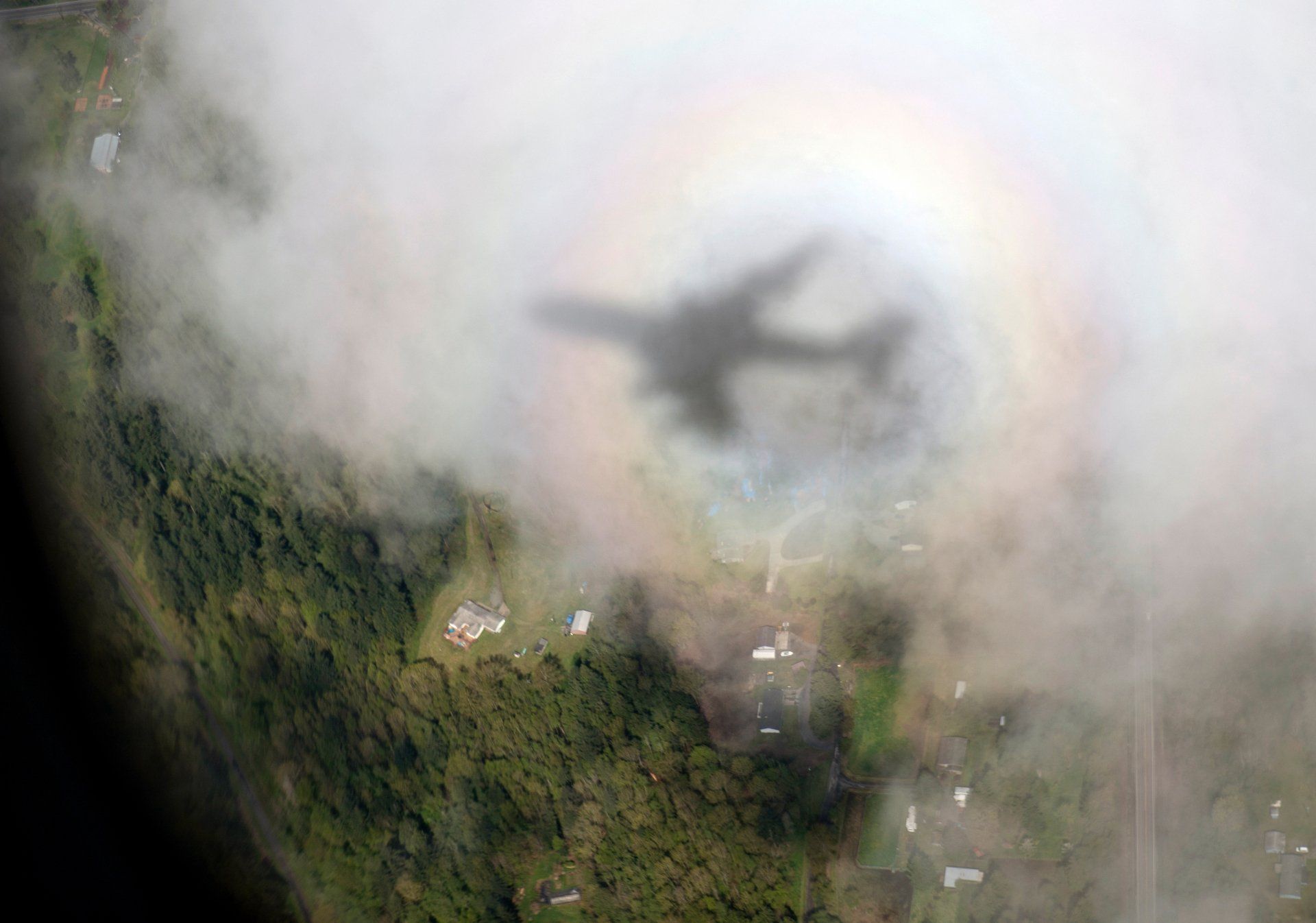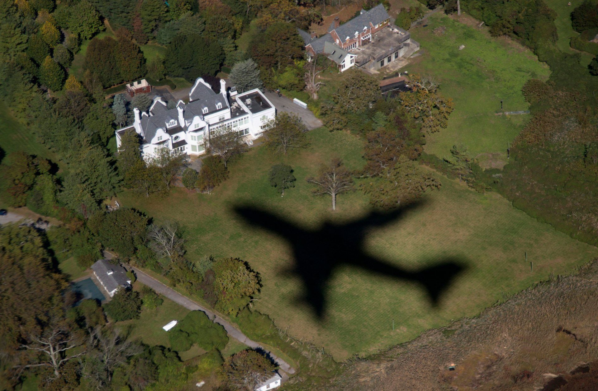 The shadow of Air Force One, with President Barack Obama aboard, on approach to John F. Kennedy International Airport, Tuesday, Oct. 16, 2012.