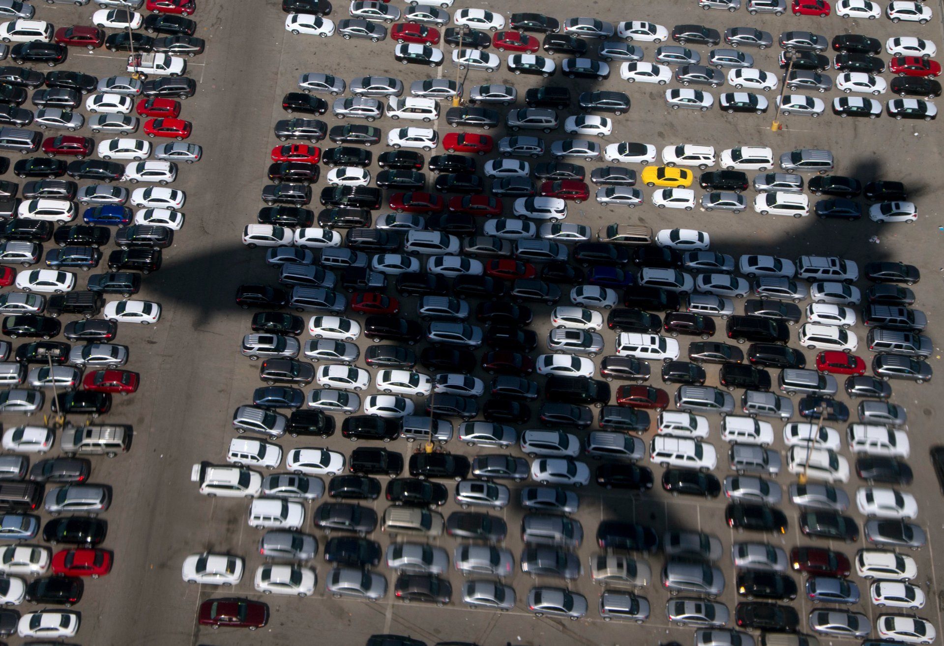 The shadow of Air Force One, with President Barack Obama aboard, on a parking lot as it arrives at Los Angeles International Airport parking lot, Sunday, Oct. 7, 2012.