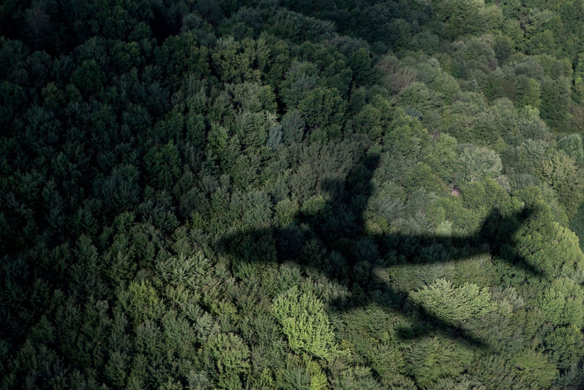 The shadow of Air Force One, with President Donald Trump and first lady Melania Trump aboard, near Vienna, Ohio, Tuesday, July 25, 2017.