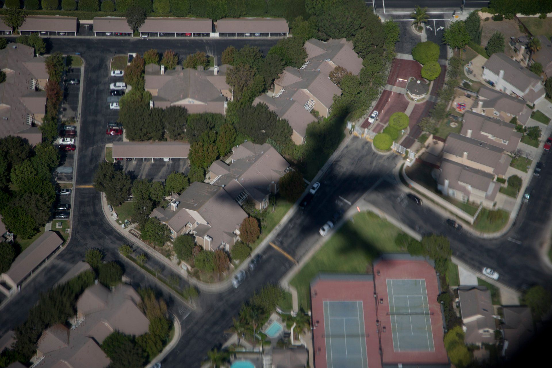 The shadow of Air Force One, with President Barack Obama aboard, Los Angeles, Sunday, Oct. 7, 2012.